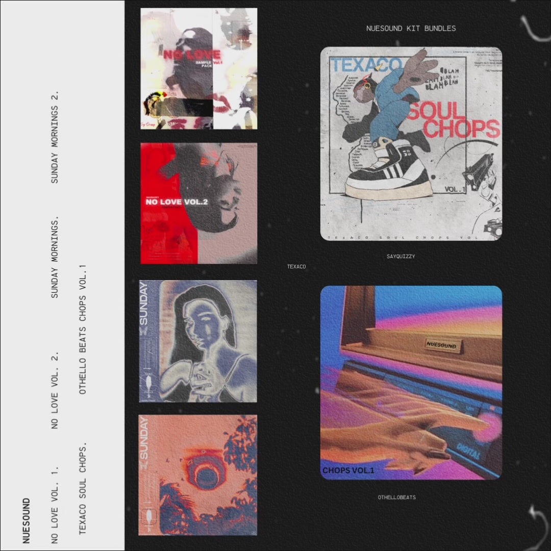 6 packs from our collection. Includes: No Love Part 1 & 2, Sunday Mornings Vol. 1 & 2, Othello Sample Chops & Texaco Sample Chops. 120+ Samples/Pre chopped Samples